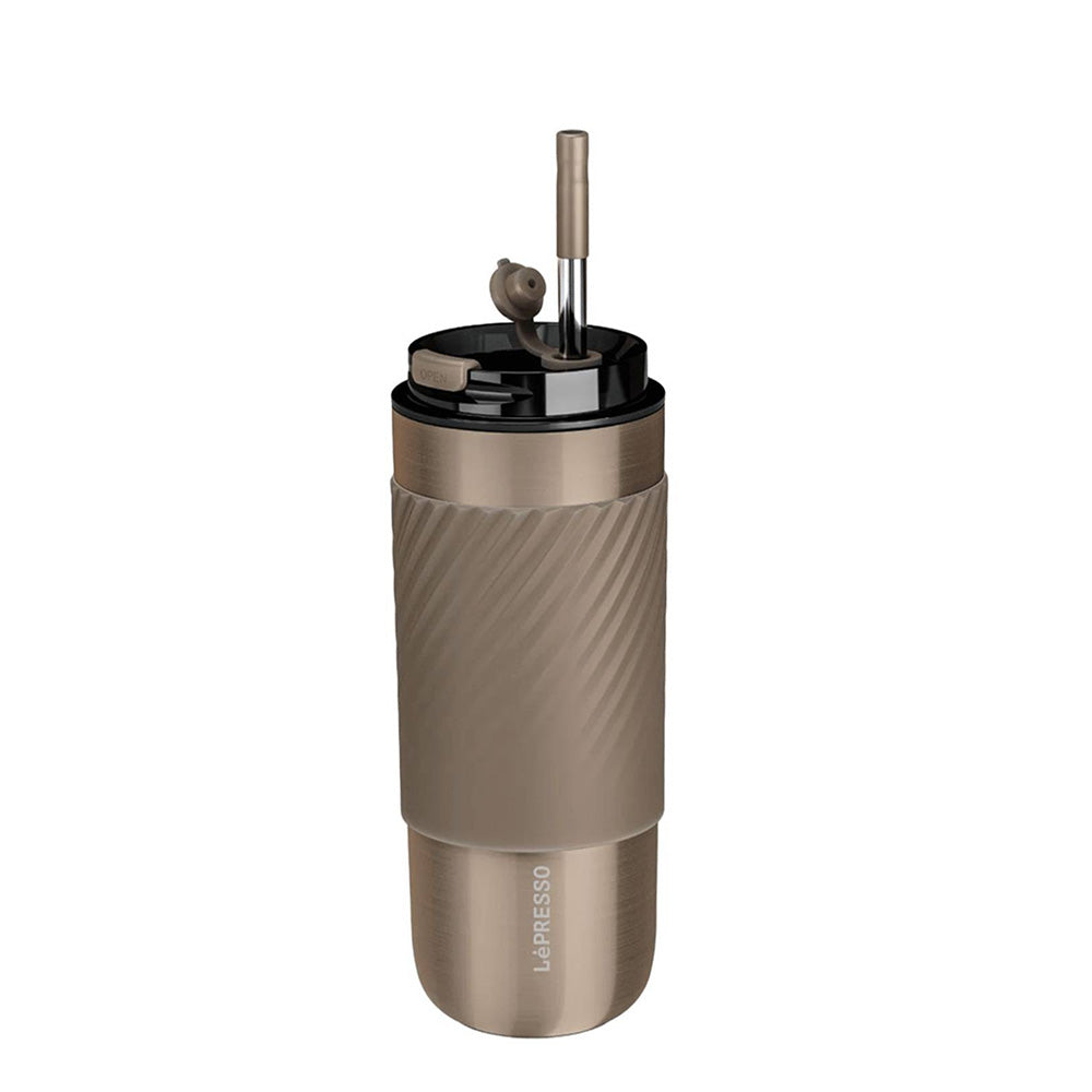 The Lepresso Thermal Tumbler with Infusion Filter is the perfect appliance for your daily hydration needs. This high quality tumbler comes with a 520ml capacity, large enough to ensure you have drink for all your day. The inner and external body of this tumbler is made from stainless steel to keep your drink warm for 8 hours and cold for 10 hours. It also includes a reusable straw, ideal for sipping your drinks with comfort. Whether you prefer tea, coffee, fruit-infused water, or other beverages, the Lepresso Thermal Tumbler with Infusion Filter offers a durable, and stylish solution for staying refreshed where ever you are.